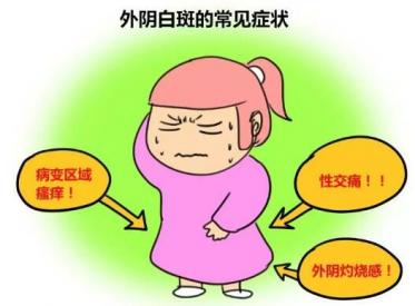 患上外阴白斑,在症状初起时首先会感到外阴瘙痒,然后局部红肿,表面偶有少量落屑,颜色逐渐变白,失去弹性,但萎缩并不明显。病变晚期则皮肤成珠白色,表面呈羊皮纸状,有的大小阴唇萎缩使阴道口变窄,甚至造成夫妻生活困难。