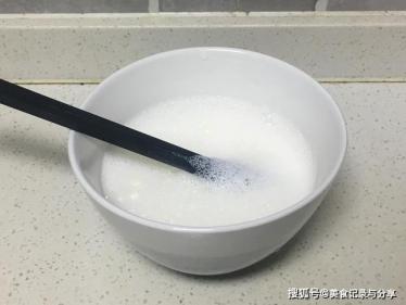 2、鸡蛋分离蛋清、蛋黄,并将蛋清加入到牛奶液中,继续搅拌至蛋清充分溶解,提起筷子没有挂住蛋液即可;如果对蛋腥味敏感,也可以挤入几滴柠檬汁去腥;
