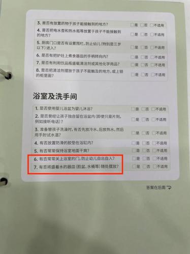 所以,在怡禾最近给会员派送的这本怡禾儿童健康手册里,在「儿童安全筛查」的章节里,“是否将盛水的器皿随处摆放”也是其中的一个排查项目,这些并不是随意写的,而是很多血泪数据的总结。