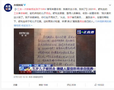 前几天,有一则名为“#工友一次做客拐走孩子19年#”的新闻冲上热搜。