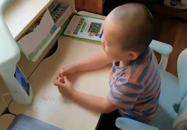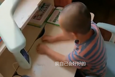 男孩乖巧地坐在那里,让妈妈放心自己会听爸爸的话,自己会好好的。但言语中还是希望妈妈有空的时候,妈妈可以来看看自己。