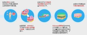 当给到病灶区皮肤一定波长的光照后,光源穿透到一定深度的病变血管处,血管壁内皮细胞内的海姆泊芬会吸收能量,并产生强烈的光化学反应,导致血管壁内皮细胞坏死或凋亡,从而选择性破坏畸形的毛细血管,达成治疗效果。
