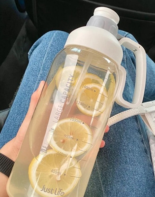 我现在每天到公司之后都会给自己这个大杯子灌满满一杯水,上面还要这种时间刻度,这样忙起来也不会忘记了,而且频繁上厕所还能避免久坐。
