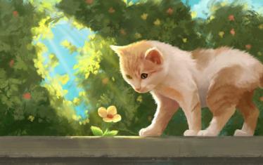 初秋,小猫的果园里结满了苹果。小猫摘了一篮又红又大的苹果,准备送给邻居猫奶奶。