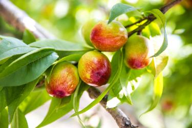 过两三个月后,那花不再像以前那样端庄优雅了,也不再像以前那样风华正茂了,而是面临调谢,不过换来的是那诱人的果实——桃。它呈心形又像圆形,远远望去,就像那粉红色的灯笼一个个挂在树枝上。外面包裹着一层粉红色的衣裳,里面便是那些甜美的果肉了,咬下去,那酸甜的果汁留在嘴里让人回味无穷。