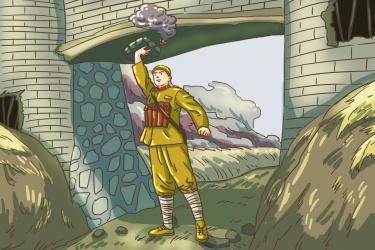 董存瑞小的时候就非常热爱学习,但因为家里没钱而读不上书。一次,一位威武的军人问长大了的董存瑞要不要参军,董存瑞连忙点头。不久,董存瑞参加了志愿军。
