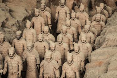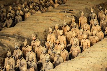 秦始皇陵坐落于陕西省临潼山北侧,修筑于公元前22年的秦朝。兵马俑是秦始皇陵的大型陪葬俑阵,也是我国历史上遗留下来的珍贵文物。兵马俑从未拍卖过真品,它作为国家珍宝,是中华民族的骄傲。