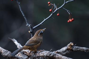终于,它们玩累了。休息时,它们一只落在树梢上,另一只则飞到葡萄架上。这时,我才看清楚画眉的容貌。它那小小的身影,稳稳地立在葡萄架之上,褐色的羽毛覆盖住身子,只有双眸处竖着一道醒目的白色。两只翅膀收在身旁,只有爪子在灵活地跳着。我一动不动地站在旁边,屏息凝神地看着这个与葡萄藤玩耍的小生命,生怕把它惊跑。它的同伴还在休息,可它却一刻都没闲着:有时用尖喙去啄啄葡萄的新芽;有时好奇地看着蜗牛背着壳从花坛上经过;有时在麻雀们开展辩论时插几下嘴,仿佛在发表自己的观点。