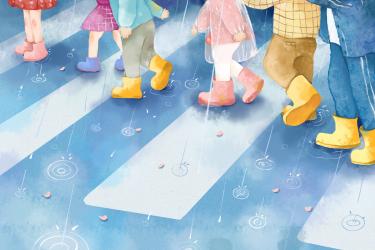 外面,过往的行人撑着伞,匆匆而过,就像雨波上漂浮的点点花瓣。汽车在雨中缓缓前进,不时鸣响汽笛,生怕撞着行人,路过积水的地方,溅起一片片水花,汽车就像雨波里穿梭的小船……