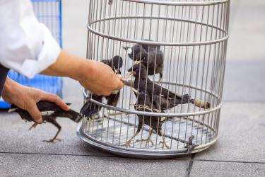 等客人走后,它又开始叫了,你看这只八哥是不是又调皮又可爱啊?