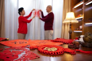 过年了!周围到处都洋溢着节日的气氛!街道被打扫的干净整齐,树木被披红挂绿装饰一新,各大商铺张灯结彩,家家户户贴上了喜庆的对联,人们脸上荡漾着幸福的笑容。