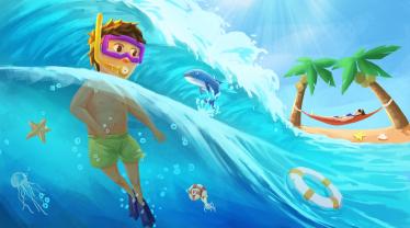 放暑假了,有一天,爸爸对我说:“袁晟,今天带你去体育馆学游泳。”我听了,高兴得一蹦三尺高,坐着心爱的车出发了,路上我一边听着动听的音乐,一边欣赏着窗外美丽的景色,不一会儿就到了游泳池。