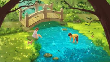 可是现在,唉——人们不停地向河里倒垃圾……让小鱼不再光顾这里,还在附近建了一家工厂,我们工作是方便了,可是小溪却被污染了。