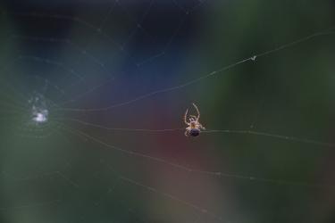 一天,我来到楼下一棵大树下,发现一只蜘蛛正在吐丝结网。十分钟过去了,二十分钟过去了。蜘蛛仍然不紧不慢地结网,眼看网就要成了。忽然下起了小雨,蜘蛛网在风中抖动了几下,然后猛地破了。我想:“蜘蛛还会继续织吗?”蜘蛛并没有灰心,开始重新织网。它织啊,织啊。有一阵风吹来,蜘蛛网嘣地一声被风撕破了。蜘蛛仍然坚强地织着网。