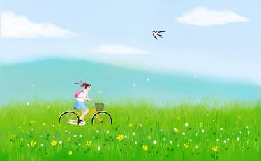踏上软绵绵的小草,微风吹拂,小草们纷纷摇动身子,争先恐后地睁大好奇的眼睛欣赏这神奇而美妙的世界。我不由俯身爱怜地抚摸着小草,它们的颜色是如此的青翠欲滴,这新鲜的嫩绿准是春——这个多彩的调色盘中最美丽的色彩!