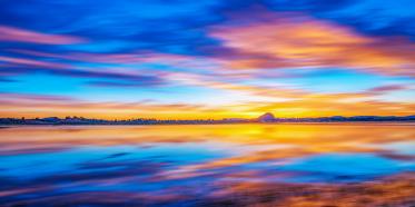 这时,朝霞悄悄地从东方泛起,它像千万把剑透过树梢。刹那间,天域变成了一个色彩缤纷的瑰丽世界。金色的霞光,犹如一只神奇的巨手,徐徐拉开了柔软的雾,整个大地变得充满生气,像溶解的水彩,在地平线上朦胧地散开。此时的天空,像个变化莫测的艺术家,在向世人展示它的魅力。一会儿金灿灿;一会儿半紫半黄,一会儿又变得红彤彤的,真是五彩缤纷!