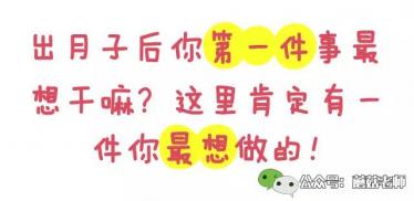 等了这么久熬了这么久,总算迎来了一些胜利的曙光。有妈妈说,洗头洗澡还行,说什么逛街,喝酒,去k歌,还是想想就算了吧。家里有个小家伙要吃奶,哪都去不了,就算出去了满脑子都是宝宝,有没有哭啊,有没有饿着啊,然后以最快的速度跑回家。哎,当妈了就不一样,那么你出月子后最想干的事是啥呢? 查看全文