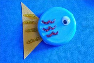 第六步:调整一下画面,一个瓶盖小鱼装饰画就完成啦!