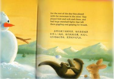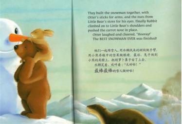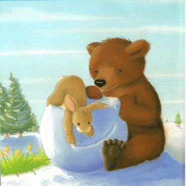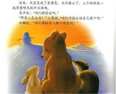 于是兔子来帮忙做雪人的脑袋,他给雪人画了一张大大的笑脸。