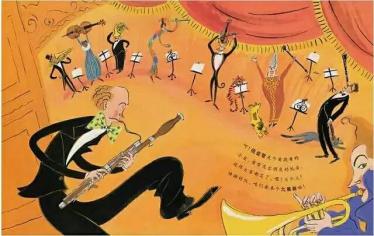 大家来听音乐会绘本 接着是一支双簧管,他长得和单簧管有点儿像,可是音色比较亮,不用说,他是要来参加八重奏的! 呵!低音管是个爱跳舞的小丑,常常发出顽皮的低音,逗得大家都笑了。喂!大个儿!快排好队,咱们要来个九重奏啦! 上一页下一页