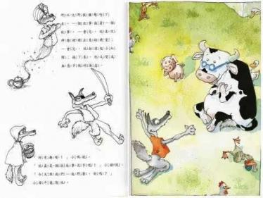 一只有教养的狼绘本 小猪、小母牛、小鸭和大野狼一起野餐。整个下午,他们就躺在草地上,一直说故事。 “我们应该去为大家说故事。”小母牛突然说。“我们可以到全世界去说。”小鸭也加入意见。“我们明天早上就出发。”小猪说。大野狼在草地上伸伸懒腰。他很高兴有这么棒的好朋友。 上一页下一页